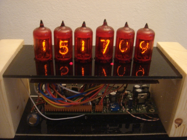 Ich habe schon früh mit Elektronik-Basteln angefangen. Mit dabei waren immer auch Uhren. Als die ersten Ziffernanzeigen in Form von Nixies auftraten, mussten diese natürlich ausprobiert werden. Ich baute damals die gesamte Logik aus Einzeltransistoren zusammen - das Teil läuft heute nicht mehr. (Die Nixies laufen in einer anderen Uhr noch.) Die aktuellen Uhrenbauten verwenden Mikroprozessoren, sind Funkuhren (DCF77) und verwenden - natürlich - Nixies. |
