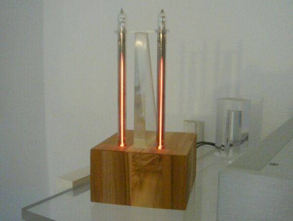 | Die aktuelle Musikanlage ist kein Eigenbau mehr, das einzig Selbstgebaute ist die Pegelanzeige mit zwei alten Anzeigeröhren. |