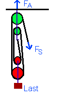 gezogen werden, da ja beide der Seile, an denen die Last hängt, verkürzt werden müssen. Was man an Kraft spart, muss man an Weg zulegen. Die benötigte Energie ist dieselbe. |