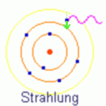 LED Bei Stromfluss durch eine Diode rekombinieren Elektronen und Löcher an der Grenzschicht. Dabei kann es vorkommen, dass die Elektronen auf eine weiter aussen liegende Schale gelangen. Ein solches Atom nennt man "angeregtes Atom", seine Elektronen besitzen mehr Energie als im Grundzustand (wo alle Elektronen so weit innen wie möglich sind). Wenn dieses Elektron auf seinen weiter innen liegenden Platz zurückfällt, muss es seine überschüssige Energie abstrahlen, es sendet also Licht aus. Ob bei der Rekombination ein angeregtes Atom entsteht und mit welcher Energiedifferenz hängt von der Art der Dotierung ab. Entsprechend dotierte Dioden senden Licht einer Farbe aus und heissen Leuchtdioden. |