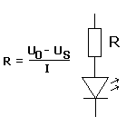 Die Berechnung dieses Vorwiderstands geht nach dem "Ohmschen Gesetz", wobei man bei der Spannung