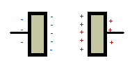 Die Verdichtung kann weiter gesteigert werden, wenn man in den Zwischenraum zwischen die Platten ein Dielektrikum einfügt, das ist ein Isolator, der sich polarisieren läßt. Im Dielektrikum werden durch die Ladungen des Kondensators die Ladungen des Dielektrikums getrennt, wodurch der "elektrisch wirksame" Abstand der Platten verkleinert wird (Die Ladungen kommen sich näher!).