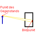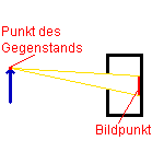 Die Lochkamera besteht aus einem geschlossenen Kasten mit einem kleinen Loch. An der gegenüberliegenden Wand kann das Bild betrachtet werden. (Indem man z.B. die Wand durch halbdurchscheinendes Papier ersetzt.) Ein scharfes Bild entsteht nur, wenn die Lichtsrahlen, die von einem Punkt des Gegenstands weggehen, sich auch wieder nur in einem Punkt treffen. Bei der Lochkamera ist dies nicht der Fall. Da das Loch aber relativ klein ist, sind die entstehenden Bildpunkte auch relativ kleine Kreise und die Unschärfe ist gering. |