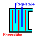 Die Regelstäbe werden nun soweit zwischen die Brennstäbe (=Uranstäbe) geschoben, dass von den bei einer Spaltung freiwerdenden Neutronen nur wieder - im Durchschnitt - eines eine weitere Spaltung auslöst.