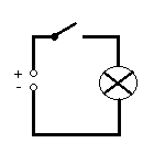 | Solange der Stromkreis nicht geschlossen ist, erzeugt die Stromquelle zwar Spannung, es kann jedoch kein Strom fließen. | |