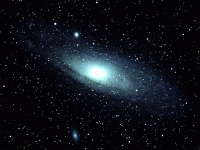 Das Weltall geht weiter: Neben unserer Milchstraße gibt es noch viele weitere Galaxien, am Nachthimmel sind einige als verschwommene Fleckchen zu sehen. Abgesehen von den beiden Magellan´schen Wolken ist der Andromeda-Nebel die nächste Nachbar-Galaxie. Der Andromeda-Nebel hat einen Durchmesser von ca. 150000 Lichtjahren (Nebenan siehst du eine Aufnahme von ihm) und ist 2,2 Millionen Lichtjahre von uns entfernt. Das lässt sich mit einem geeigneten Maßstab zeichnen: Wenn das auf ein Blatt Papier passen soll, wäre 1 cm für 100000 Lichtjahe geeignet. Die beiden Galaxien sind dann 22 cm voneinander entfernt, die gesamte Milchstraße mit ihren vielen Milliarden von Sternen wäre dann noch 1 cm groß zu zeichnen. Und was ist zwischen den Galaxien? Nach unserem Wissen wahrscheinlich nichts.... Oder doch irgendwas? Bei manchen Berechnungen scheint es im Universum zu wenig Masse zu geben. Die fehlende Masse wird der "dunklen Materie" zugeschrieben, die aber bis heute (2019) noch nicht nachgewiesen ist. |