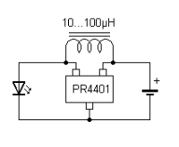 Wenn man etwas mehr Platz hat, kann man einen solchen LED-Schaltwandler auch diskret aufbauen - damit läßt sich aus einer Batterie noch der letzte Rest Energie herausholen. Burkhard Kainka hat auf seiner Bastelseite mehrere Vorschläge dazu. Weiter unten auf dieser Seite wird auch auf den PR4401 eingegangen.