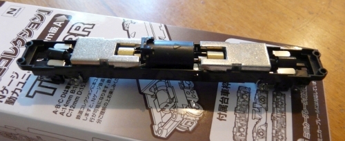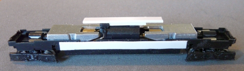 Das Chassis erhielt die Drehgestellblenden des Del Prado Modells. Weiter wurden Distanzstücke für die richtige Höhe und seitliche Polster für den Halt des Gehäuses angebracht.