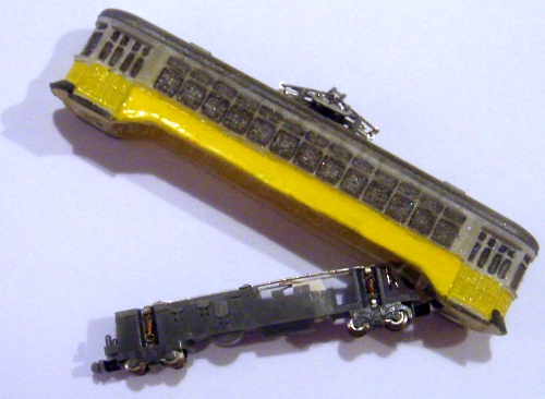 kaufte ich ein Straßenbahngehäuse in Spur Z und habe es koloriert.
