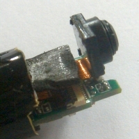 Jetzt geht man etwas brutal vor und biegt mit einer Zange die Blechteile weg, ähnlich wie bei einem Dosenöffner. Wenn die Kamera frei liegt, muss ihre Verklebung vorsichtig gelöst werden. Dann kann man die Kamera etwas nach vorne ziehen und um 90 Grad verdrehen.