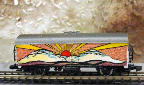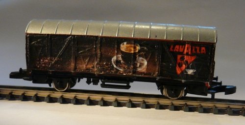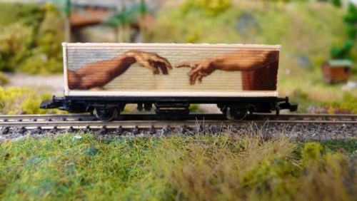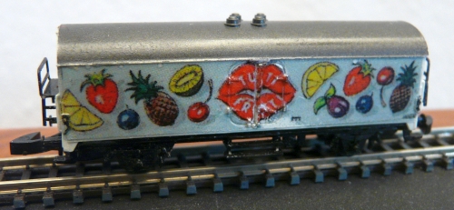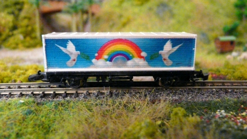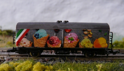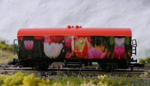 (Wer das nachmachen möchte: Bei den bunten Wagen müssen die Seitenwände weiß grundiert werden, da ein Home-Drucker kein weiß drucken kann.)